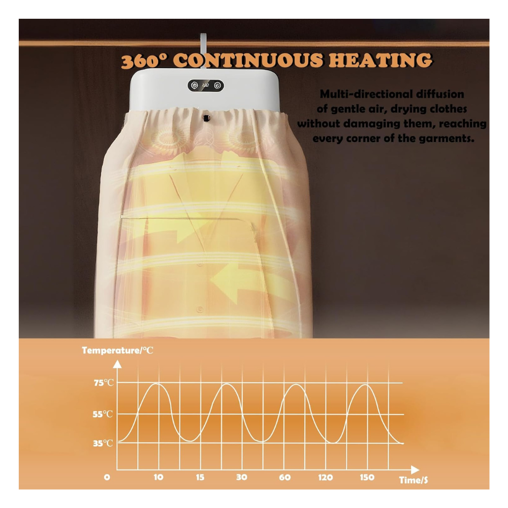 Our Portable Clothes Dryer is designed to dry your garments in as fast as 30 minutes, making it the perfect solution for small spaces, travel, dorm rooms, RVs, and quick everyday drying needs.